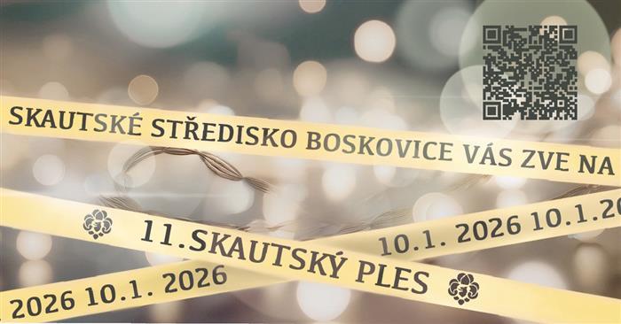 Skautské středisko Boskovice Vás zve na 11. Skautský ples.Kde: Sokolovna BoskoviceKdy: 10. 1. 2026V kolik: 20:00Cena vstupenek: 300,- Kč