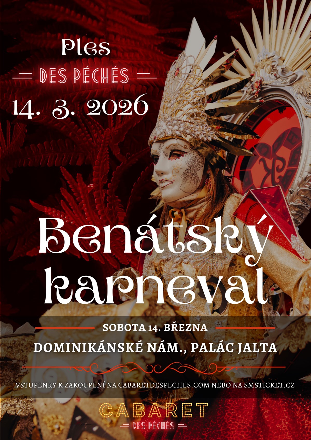 Jakmile se otevřou dveře sálu, realita zůstává za nimi a noc se ponoří do podmanivého světa Benátského karnevalu. Mezi mihotavými světly, šepotem masek a leskem sametu se rodí večer plný elegance, tajemství a svůdné kabaretní atmosféry. Tento výjimečný ples vás zavede do prostředí, kde se noblesa snoubí s lehkou provokací a každý detail je součástí velkolepé show.