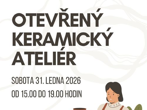 OTEVŘENÝ KERAMICKÝ ATELIÉR - sobota 17. ledna od 15.00 do 19.00 hodinpro 15+ a dospělé/ vstup/ 250 Kč, 1 kg hlíny+1.výpal/ 70 Kč, glazování + 2. výpal/ 50 Kčpřihlášení do 14. 1. osobně v SVČ nebo přes rodinný účet