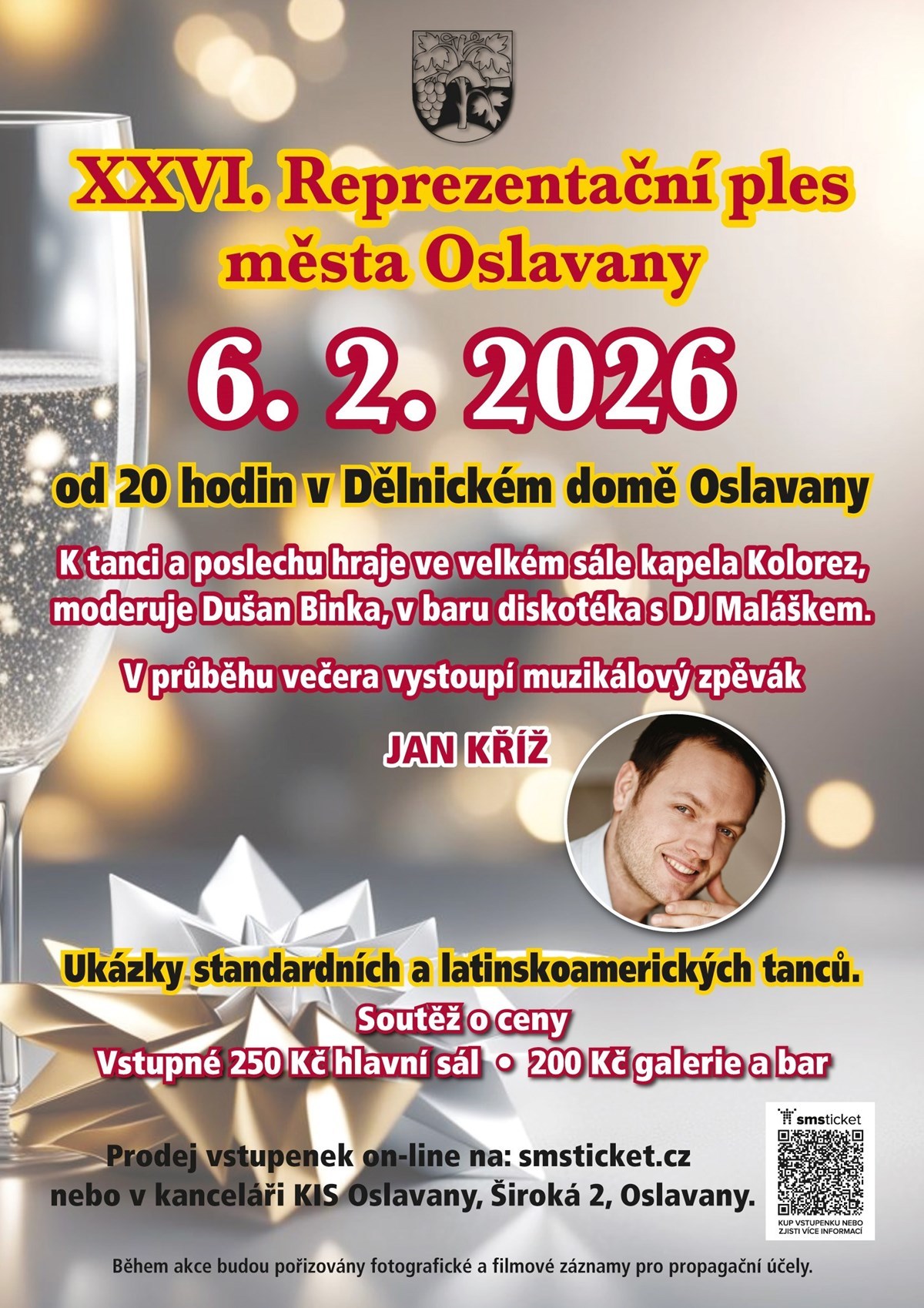 V průběhu večera vystoupí muzikálový zpěvak Jan Kříž.