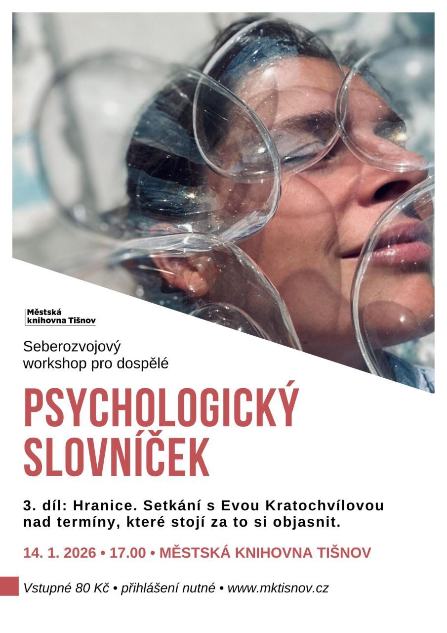 Seberozvojové workshopy s Mgr. MgA. Evou Kratochvílovou obsahují teoretickou a sebezkušenostní část. Přihlaste se, prosím, na e-mail → kamila.vejrostova@kulturatisnov.cz. Platba (80 Kč/osoba) je možná pouze v hotovosti přímo v knihovně.