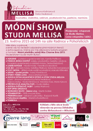 Máte rádi módu a sledujete nejnovější trendy v oblékání, líčení a péči o tělo vůbec? Pak právě pro vás připravilo studio Melisa tuto akci.